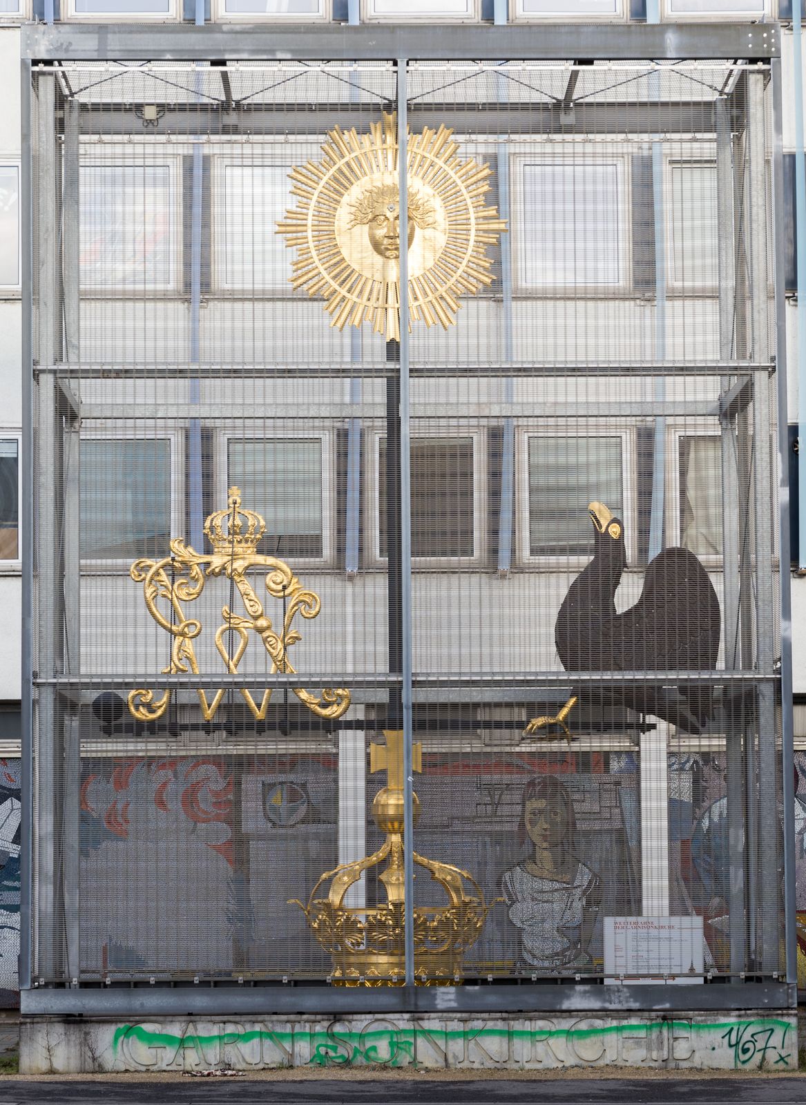 Einige Teile der alten Garnisonkirche konnten beim Abriss gerettet und bereits restauriert werden. In einem Kasten an der Breiten Straße vor dem Rechenzentrum sind Teile der alten Wetterfahne und der Turmspitze zu sehen.